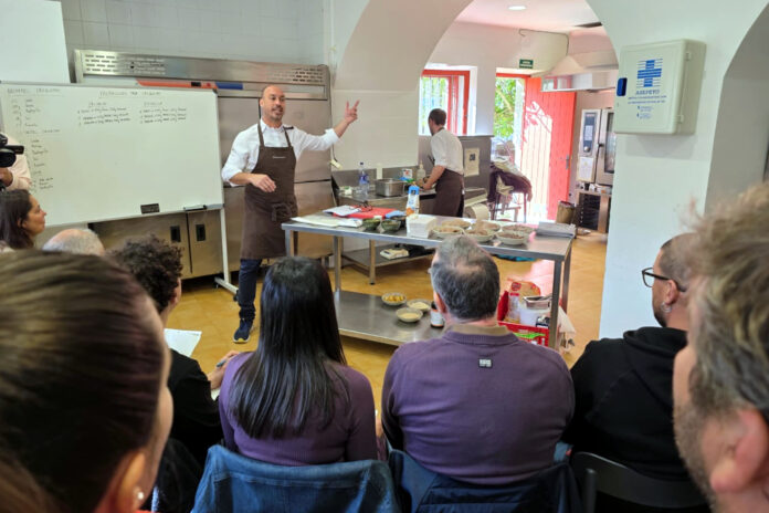 Per a les croquetes, el xef ha ensenyat diversos mètodes per fer-les més creatives, “combinant sabors una mica diferents com pot ser la ceba caramel·litzada o la ratafia”. A més, ha fet incís en l’arrebossat: no cal que es faci sempre amb pa, sinó que també poden utilitzar altres tipus de farina. “La qüestió és que ells agafin idees per poder sortir, si volen, de la croqueta tradicional”, ha afegit.