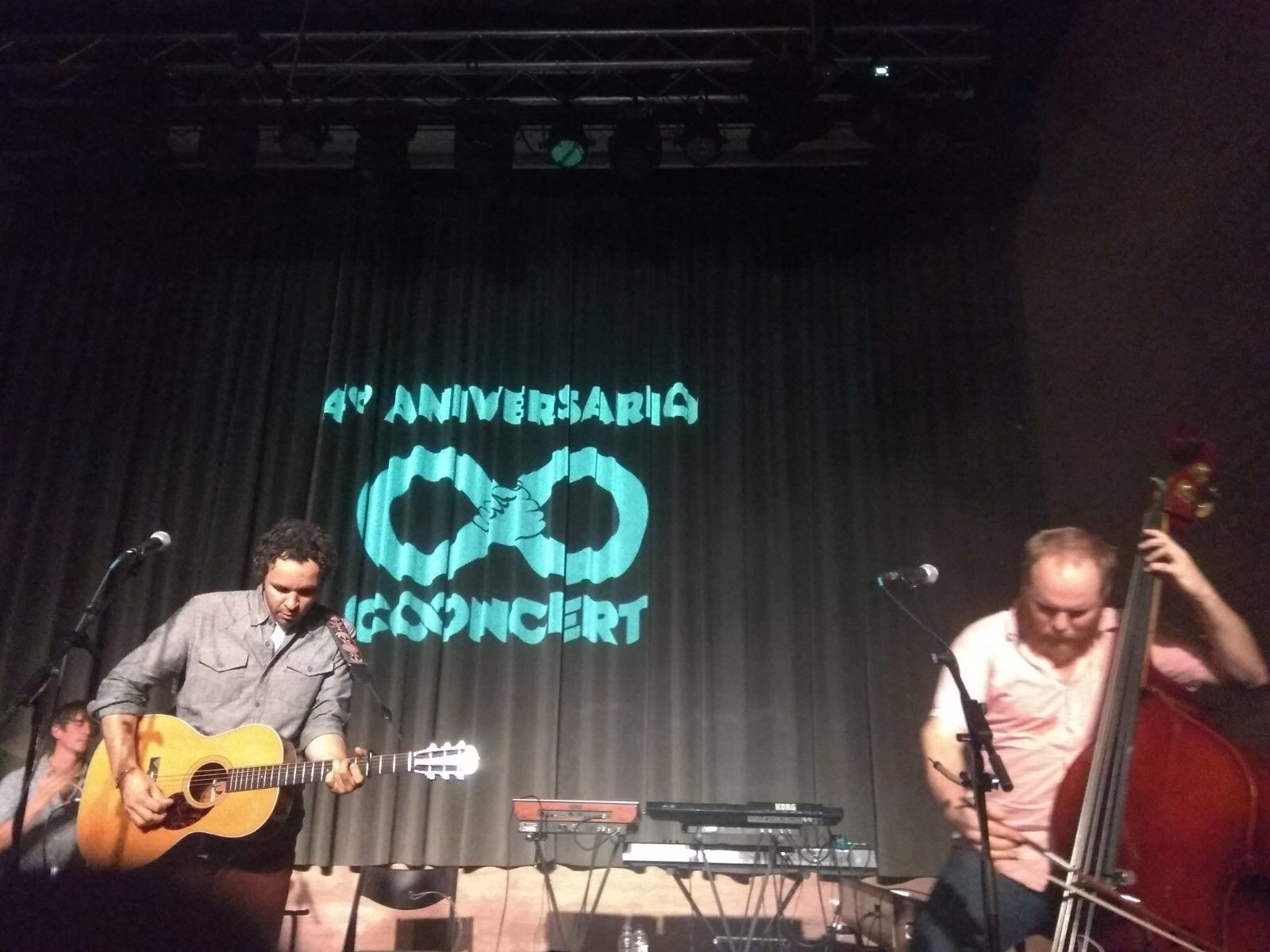 Arribats finalment al moment esperat, el duet original format per Israel Nebeker (veu solista i guitarra) i Ryan Dobrowski (percussió), acompanyats de Luke Ydstie (Contrabaix) en representació de l’actual formació americana Blind Pilot, entrà en escena. Alegre davant un reduït nombre de persones expectants que ja s’apretaven més endavant per ser a prop de l’escenari i parlar-los, Israel es mostrà amistós i gratament sorprès davant la complicitat atenta al seu diàleg. Mentrestant, un Luke bromista i exigent amb la qualitat del so a la sala, animava la festa i reia les gràcies que li llençaven els més propers al seu racó.
