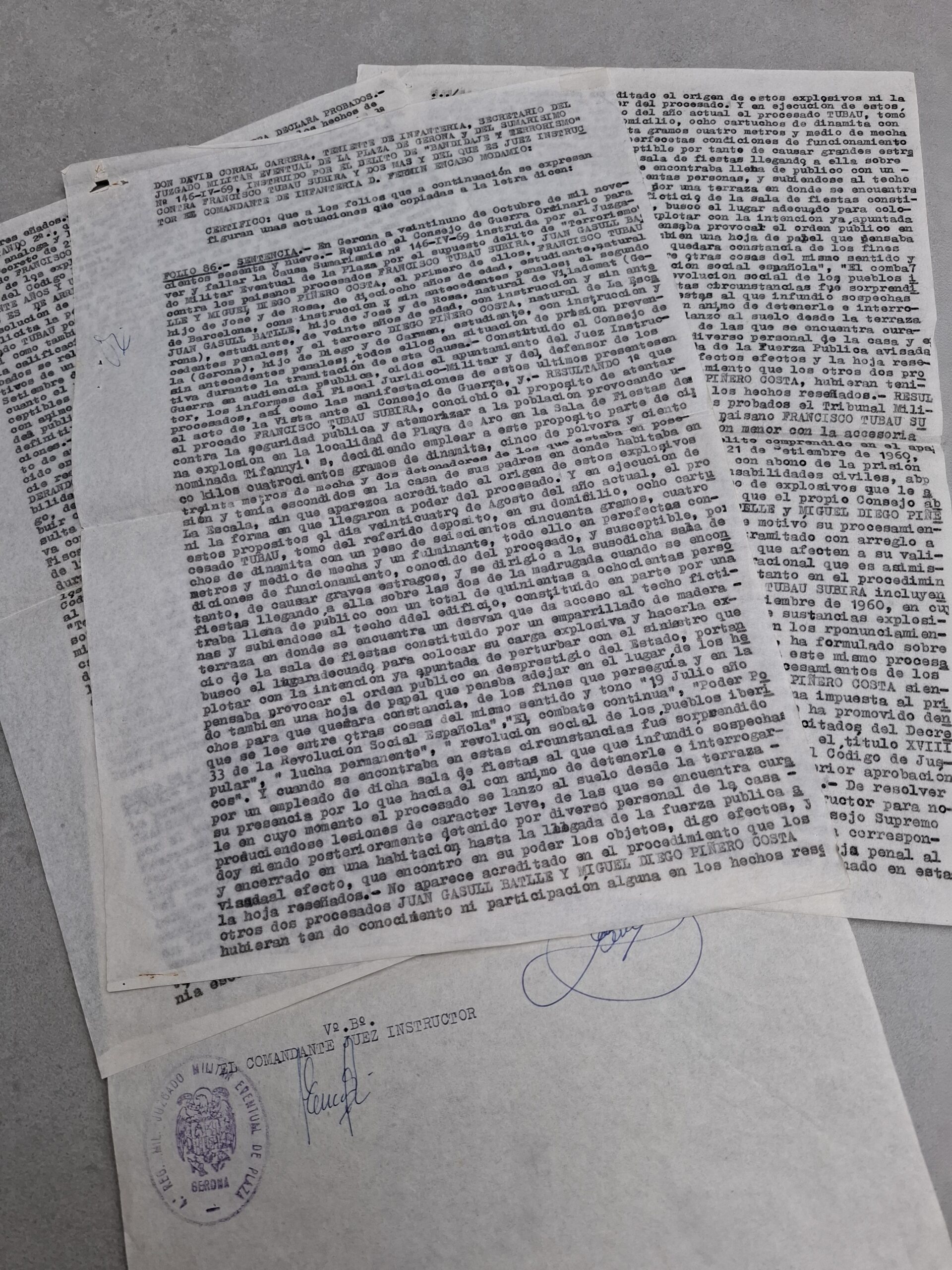 El document més contundent és la comunicació de la sentència judicial, que exposa els fets des d’una perspectiva estrictament repressiva i amb un llenguatge que no deixa espai per al matís.