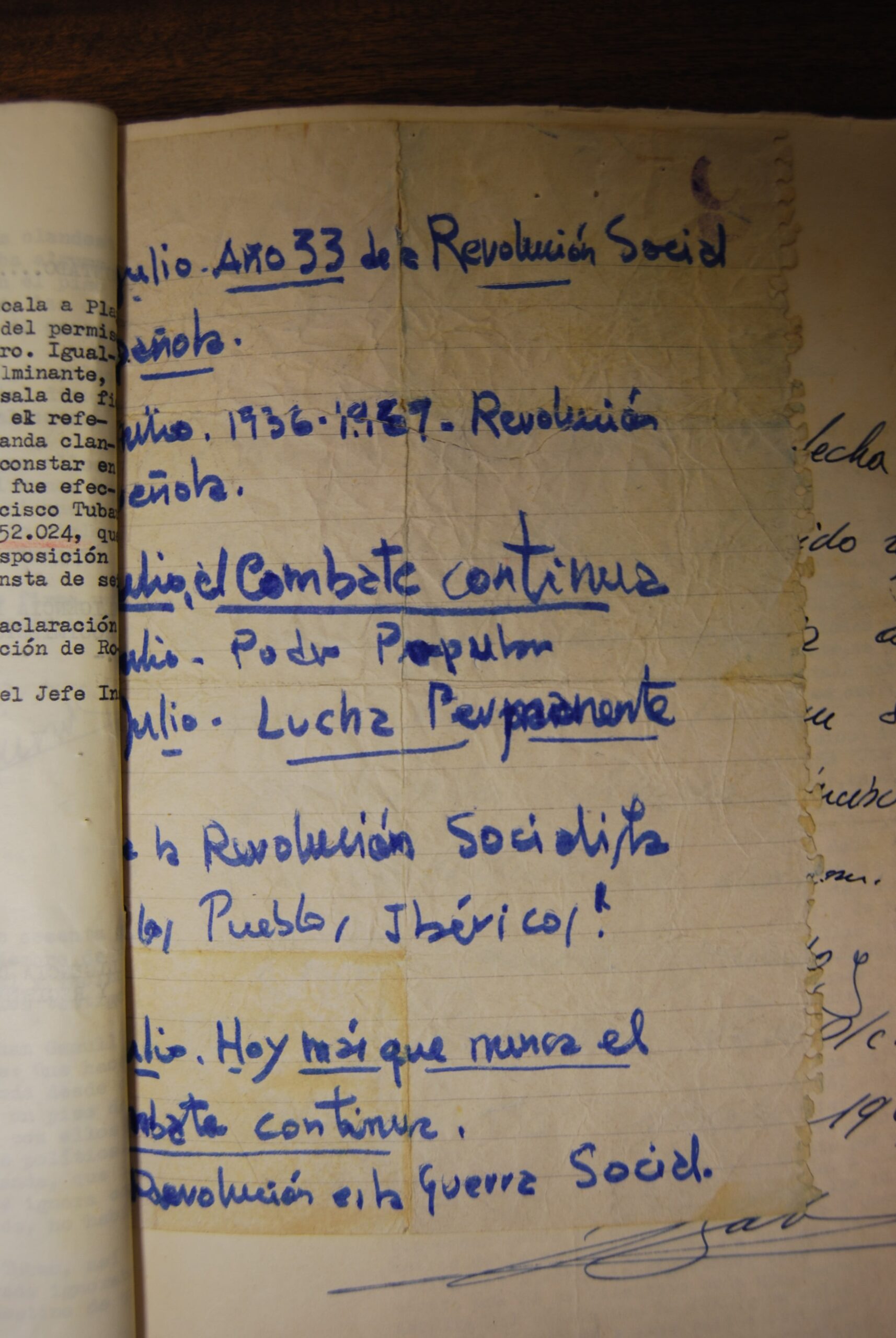 “…al grito de ‘33 años de la Revolución española, el combate continúa, lucha permanente’…”
