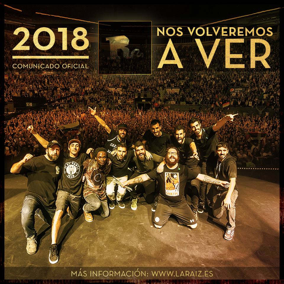 La Raíz ha emès un extens comunicat a través de la xarxa on expliquen que el 2018 el grup s’aturarà. No saben si serà el final de la història, i que el camí decidirà sense pressions externes i sense pressa. Però que necessiten temps després de 12 anys de treball sense descans.