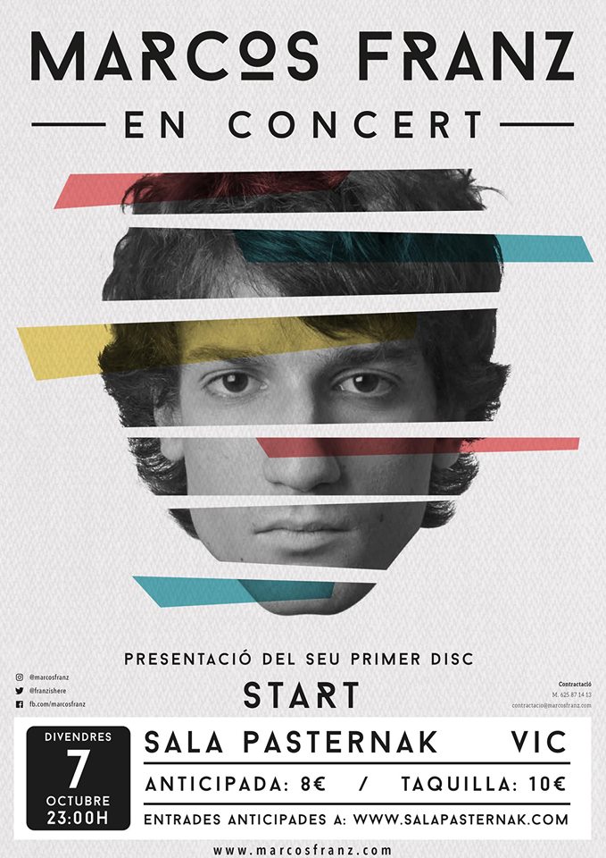 Franz, portarà les seves cançons als escenaris amb una banda de qualitat. La seva música és jove i fresca, amb tocs melancòlics, molt personal i amb clares influències britàniques. Un estil de pop no gaire habitual a casa nostra que sense dubte caldrà prestar-hi molta atenció. Marcos Franz crea el seu projecte musical amb l’ambició de tocar en els escenaris catalans per després sortir per Espanya, Europa i els EUA. Per fer tot això, anirà acompanyat per una banda molt solvent, amb una mescla de músics consagrats com Ivan Sanmartín a la bateria, i joves promeses com en Quim Nicolau al baix, l’Albert Medina al piano i l’Albert Formatger a la guitarra elèctrica.