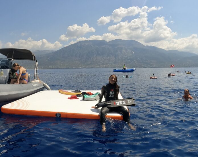 Sánchez-Arán, coneguda com “la Isa”, s’entrena habitualment a les Illes Medes, però aquests dies ultima la preparació a Kalamata, al costat del també apneista Fran Quesada i la delegada tècnica de la FEDAS, Natalie Cabanas.