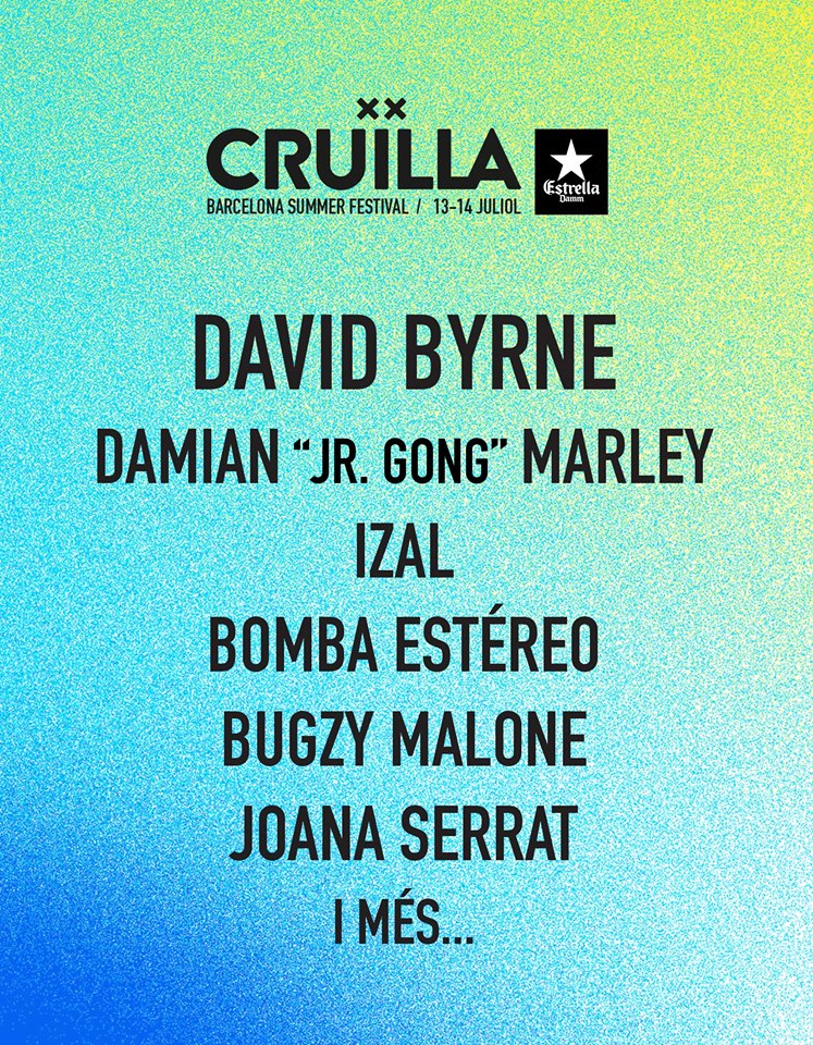 El primer dels noms confirmats, David Byrne, és possiblement un dels artistes que millor representa la idea musical del Cruïlla, és una de les primeres estrelles del pop anglosaxó que es va obrir als ritmes llatins i africans, juntament amb Paul Simon i Peter Gabriel.