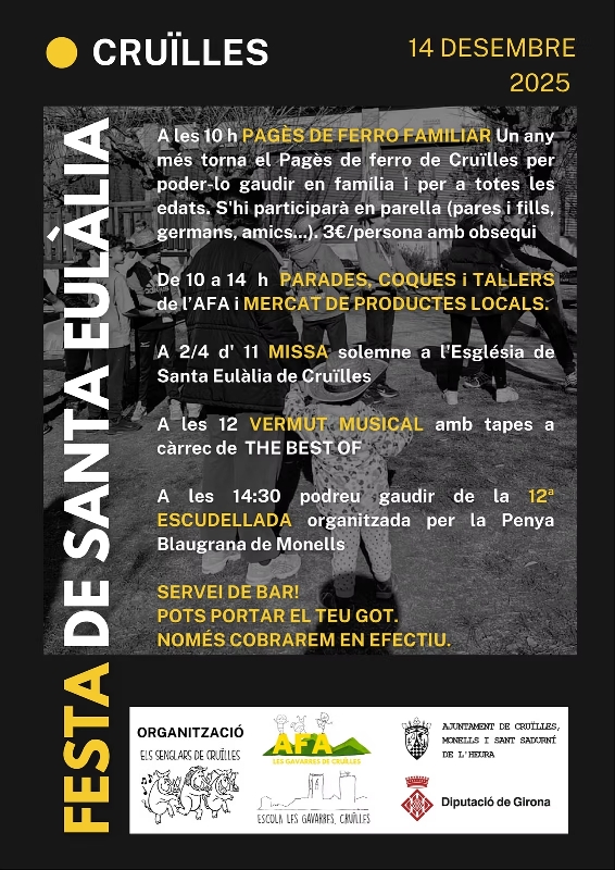 Privat: Cruïlles celebra la Festa de Santa Eulàlia i la 12a Escudellada de la Penya Blaugrana Monells el 14 de desembre