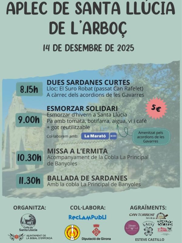 Privat: Diumenge arriba l’Aplec de Santa Llúcia de l’Arboç amb esmorzar solidari, missa i ballada de sardanes