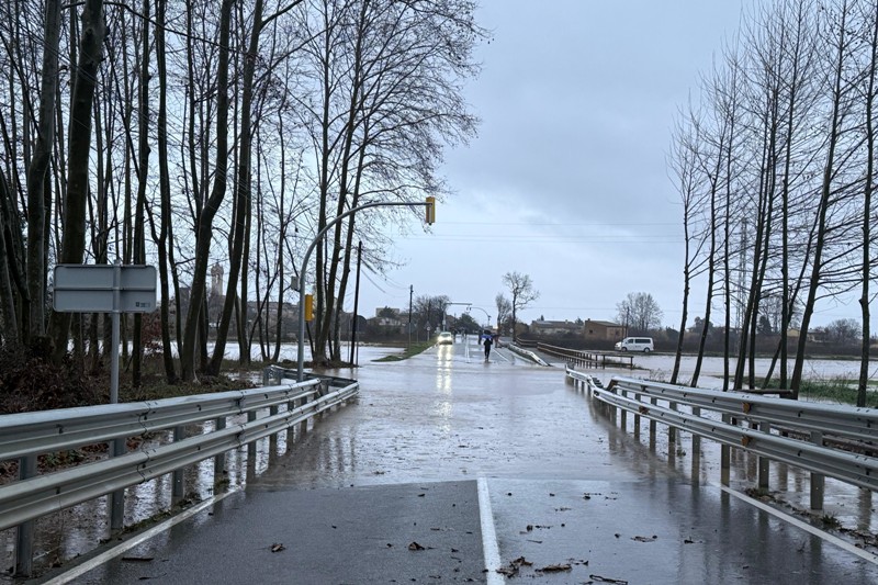 Privat: El temporal fa desbordar el Ter a Verges i obliga a tallar el pont d’accés i sortida al municipi