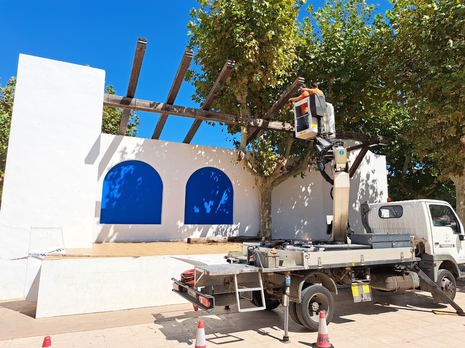 Privat: Es retira l’entramat de biga decorativa ubicat a l’escenari de l’Arbreda