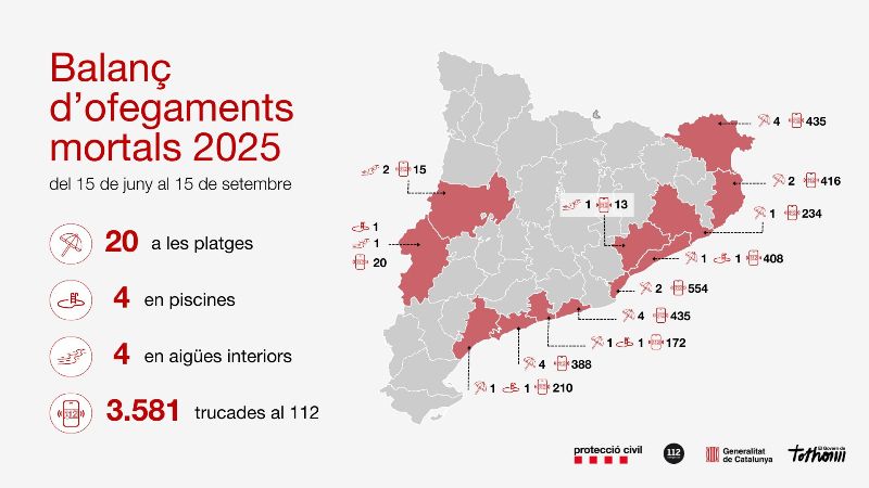 Privat: La campanya de bany es tanca amb 20 morts a les platges, quatre a piscines i quatre més a aigües interiors