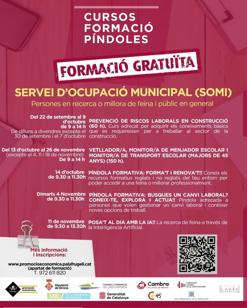 Privat: Noves propostes de cursos gratuïts del Servei d’Ocupació de Palafrugell per al darrer trimestre de l’any