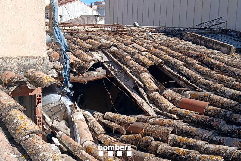 privat:-s’esfondra-part-de-la-coberta-d’un-edifici-a-figueres-i-desallotgen-cinc-veins-per-precaucio