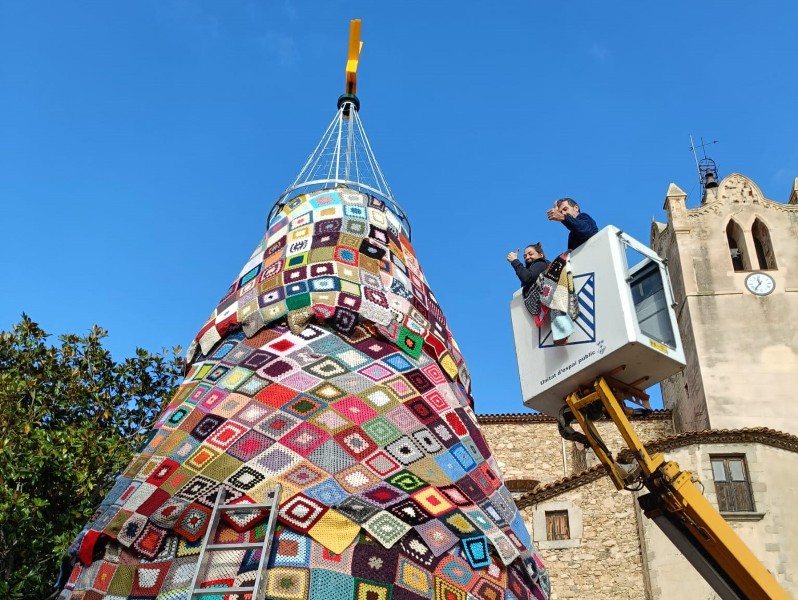 Privat: Un arbre de Nadal de ganxet de 9,5 metres d’alçada, protagonista de l’encesa de llums d’aquest dissabte al nucli antic de Calonge
