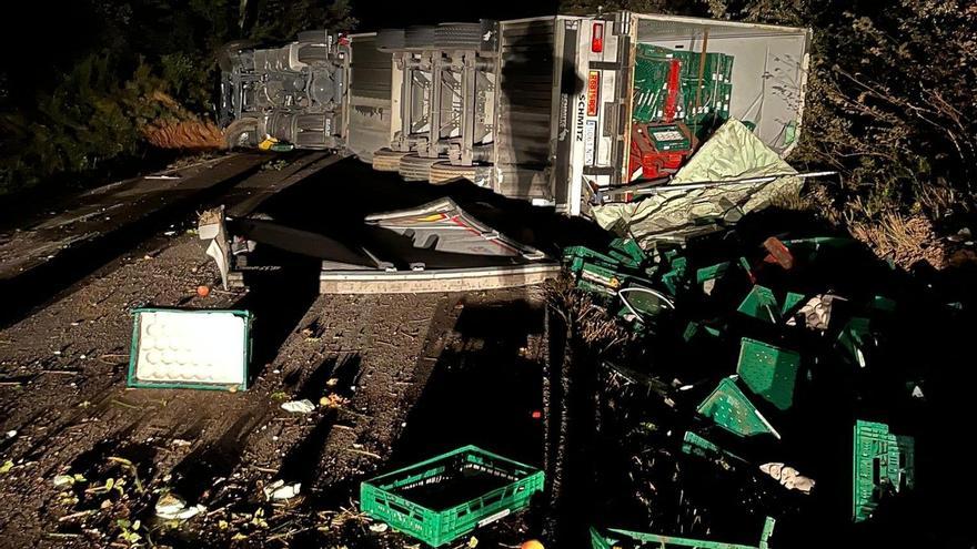 Privat: Un camió bolcat amb 40 tones de pomes talla la GI-642 entre Rupià i Parlavà