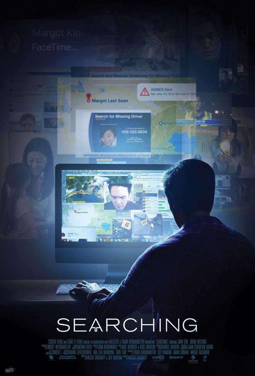 Searching ens explica una història convencional sobre la desaparició i investigació d’una adolescent, però el format en què ens ho presenta és nou i original. La pel·lícula està construïda a través de les pantalles que visualitza el nostre protagonista, és a dir, des de cerques per Google, fins a videotrucades, passant per gravacions de càmeres de seguretat i canals de televisió. Aneesh Caganty ens explica aquesta història utilitzant com a recurs cinematogràfic les pantalles, siguin d’ordinador o telèfons mòbils.